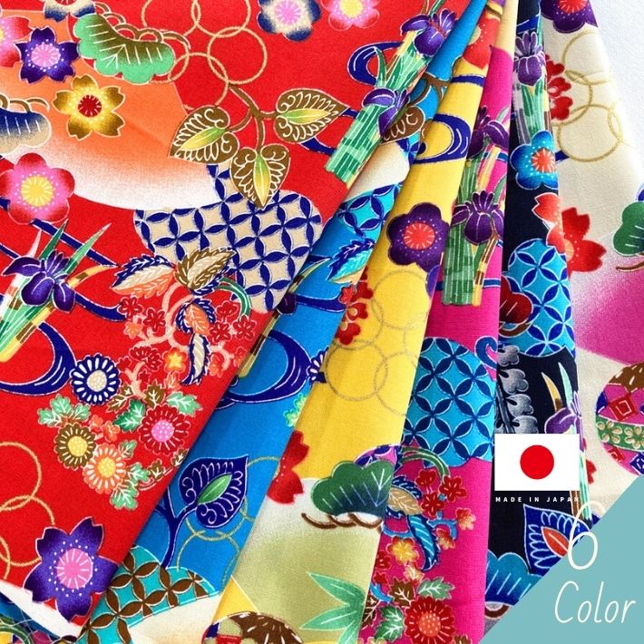 綿スケア金彩プリント76斜め花まつり柄 ...