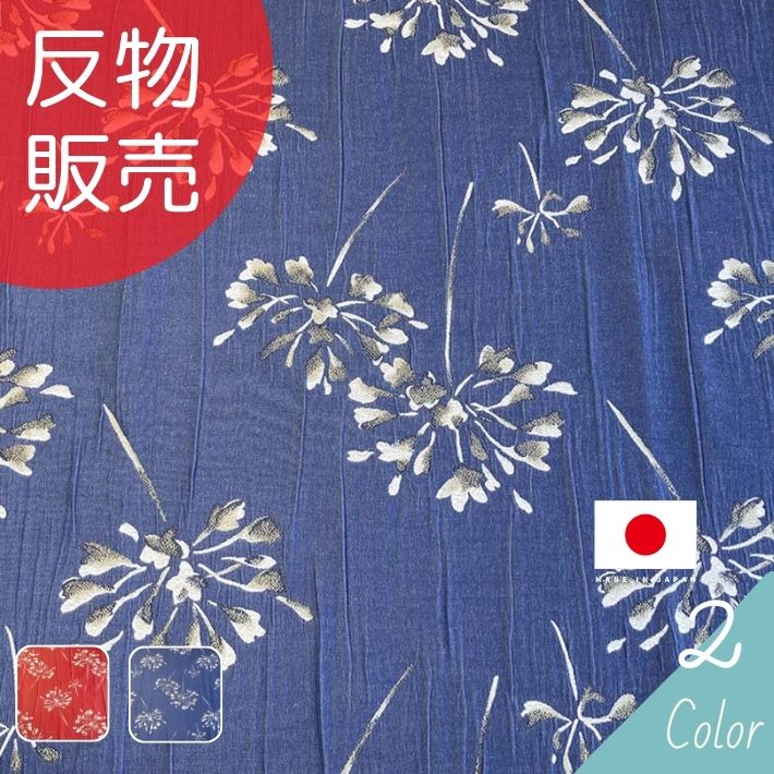 綿ちりめん調エンボス金彩プリント100花...