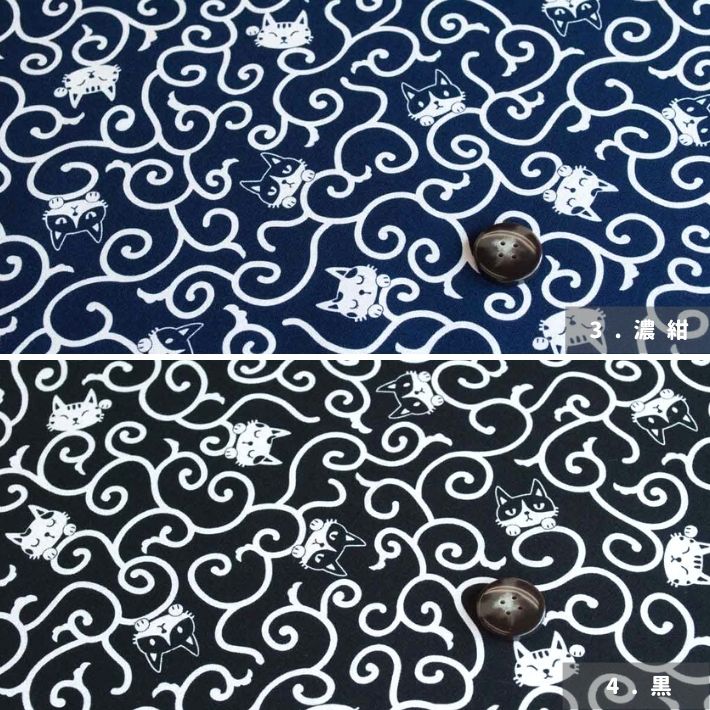 - 綿シーチング民芸プリント77唐草×猫柄 切り売り=1m単位