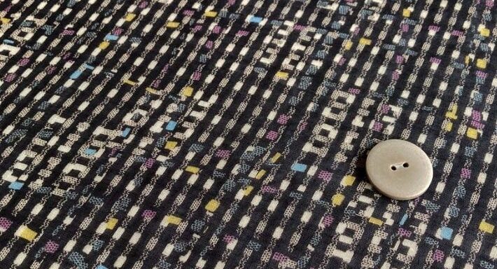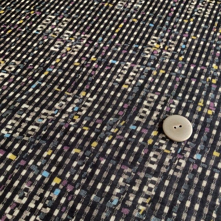 隙間のある籠を編んだような格子柄。使用する色をランダムにすることで、本来規則的であるはずのチェック柄に変化をもたらしています。