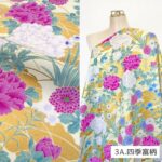 【3A.四季富花】地色は淡い黄色、柄は白/青藤色/赤紫系